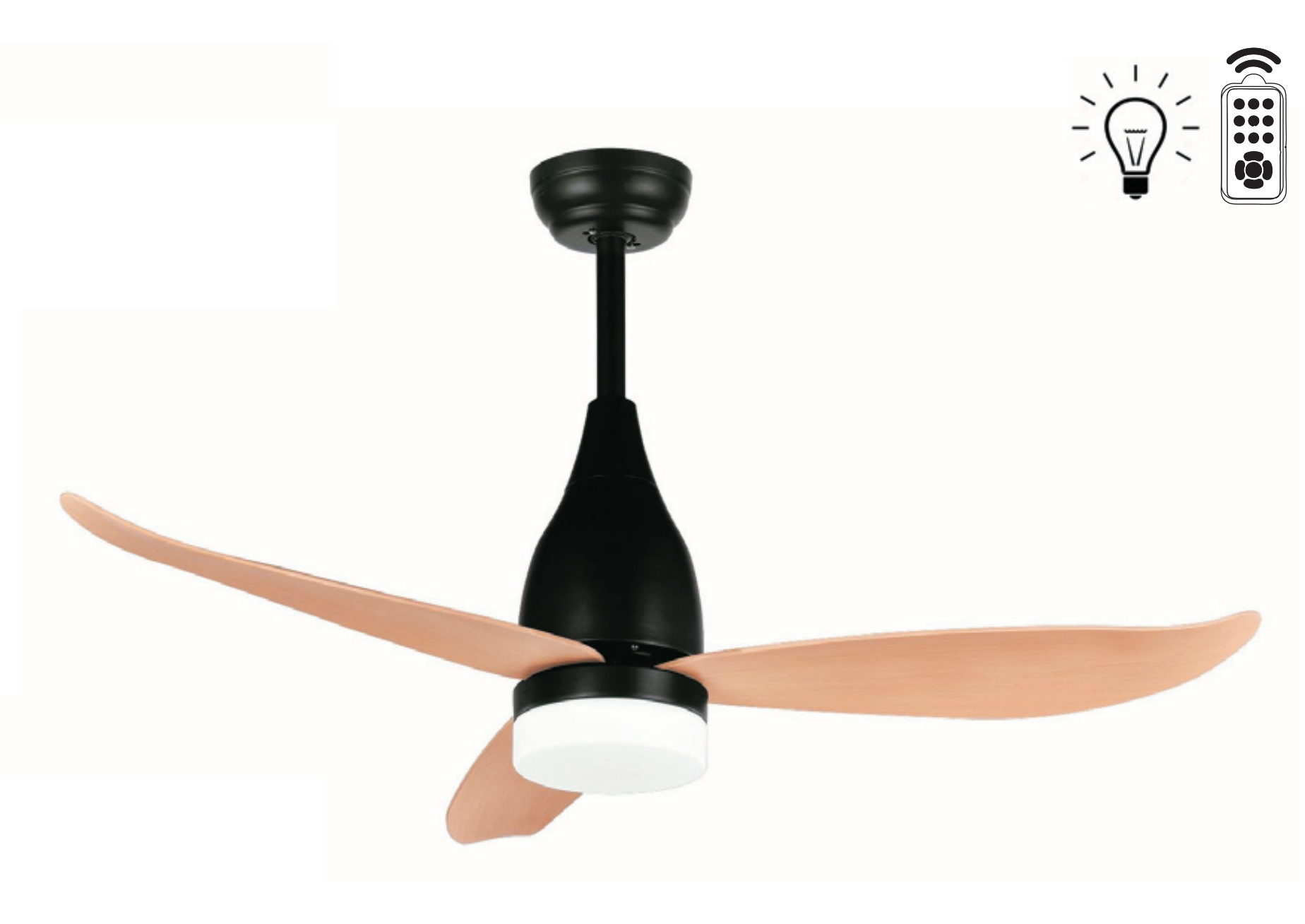 Kaşkar Taflan D52070 35W Işıklı Mat Siyah Gövde Abs 3 Kanatlı Uzaktan Kumandalı Tavan Tipi Vantilatörü
